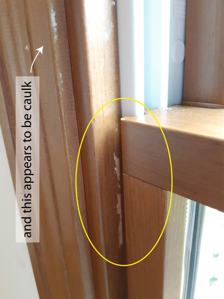 I tried to remove this caulk. It is not quite as obvious now, but there is still a very noticeable stain.