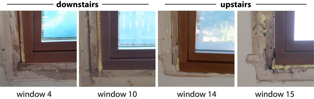 And to make this approach to the upstairs windows work, each window had the lower piece of exterior trim removed.