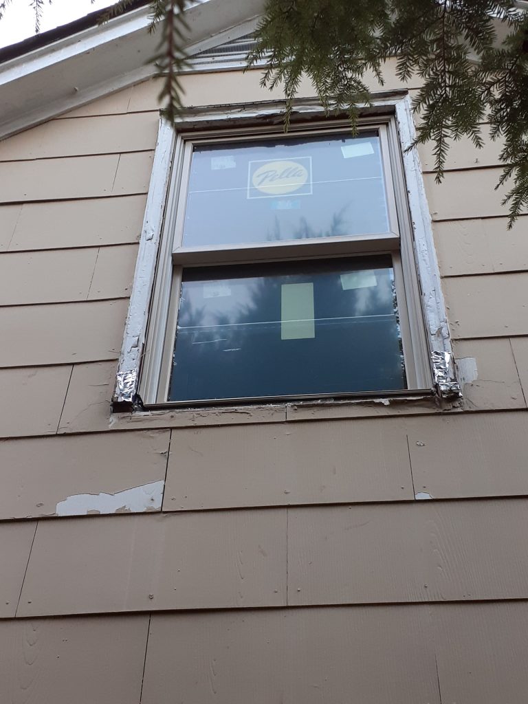 (As you can see, the siding is dirty and badly in need of painting. That cleaning/repair/painting project began after the Pella window fiasco.)